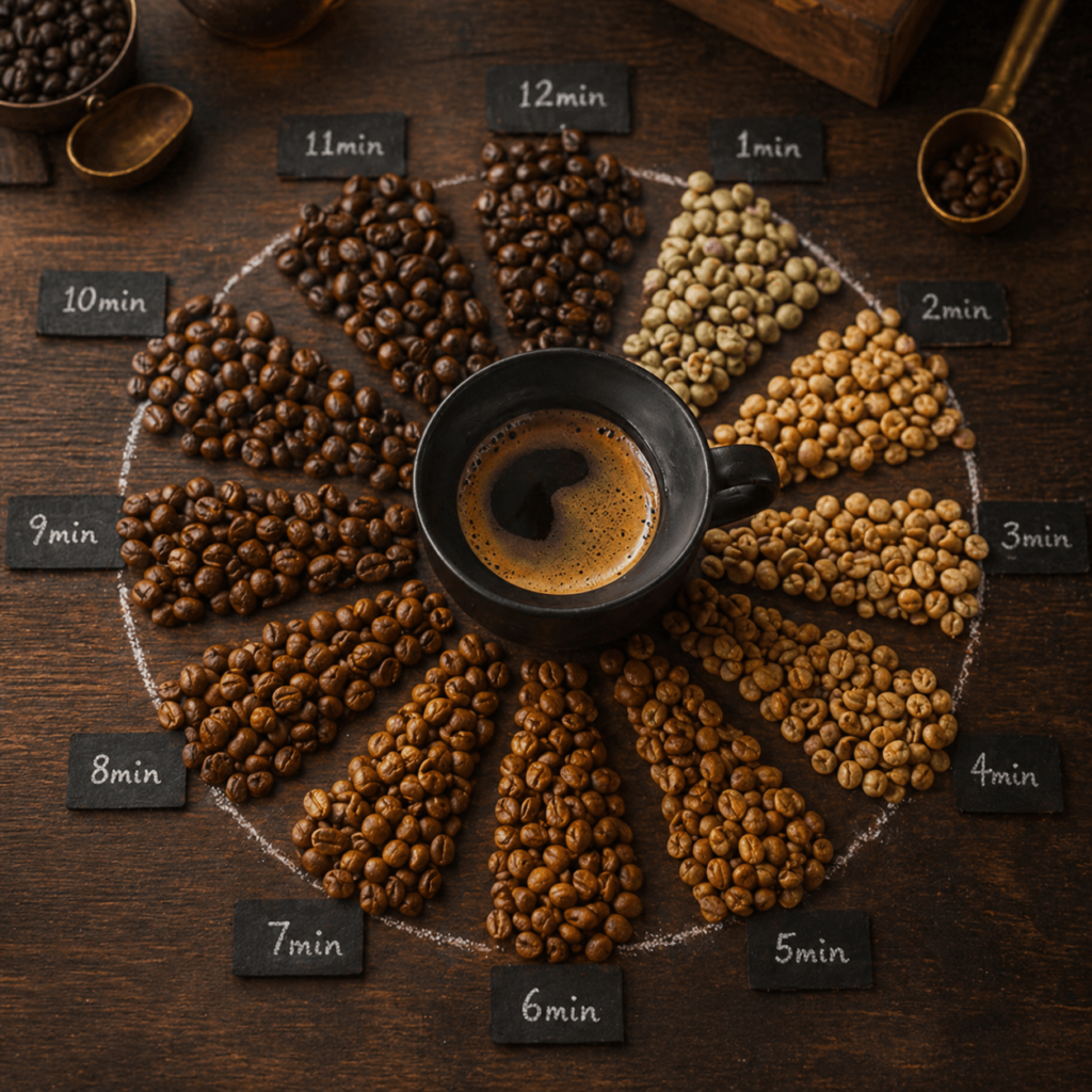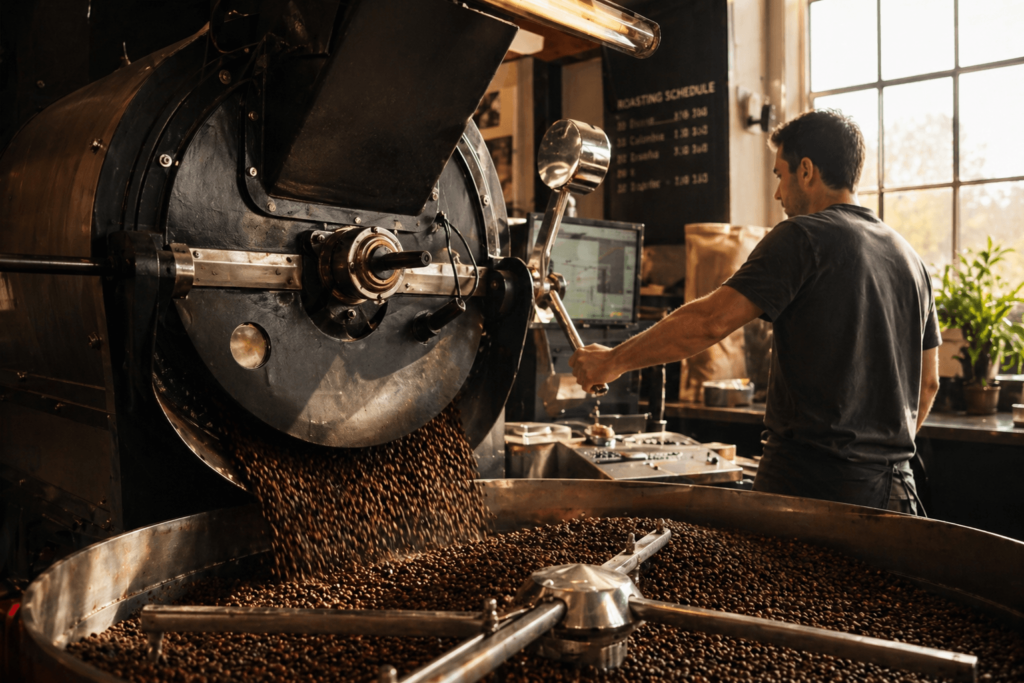Перед тем, как обжарить кофейные зерна, на предприятиях выполняется сортировка сырья. Далее идет обжаривание, охлаждение и упаковка. При нагреве зернышки постепенно меняют свой цвет с зеленого на желтоватый, и в конечном итоге принимают тот или иной оттенок коричневого – это зависит от степени обработки. Кроме того, они увеличиваются в размерах практически в два раза, но при этом становятся легче, что объясняется испарением большого количества лишней воды.
